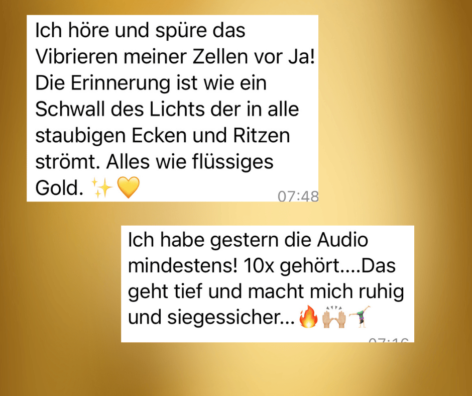 - Du aktivierst deine wahre Präsenz und richtest dein System auf Liebe, Lebenskraft und Wohlstand aus.