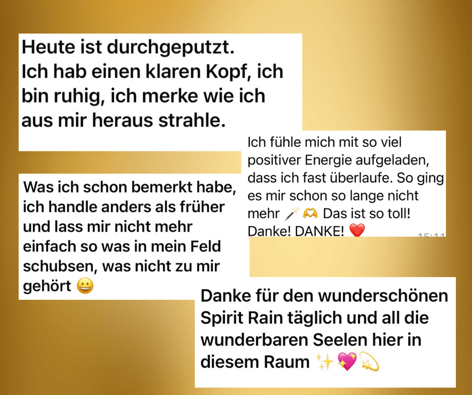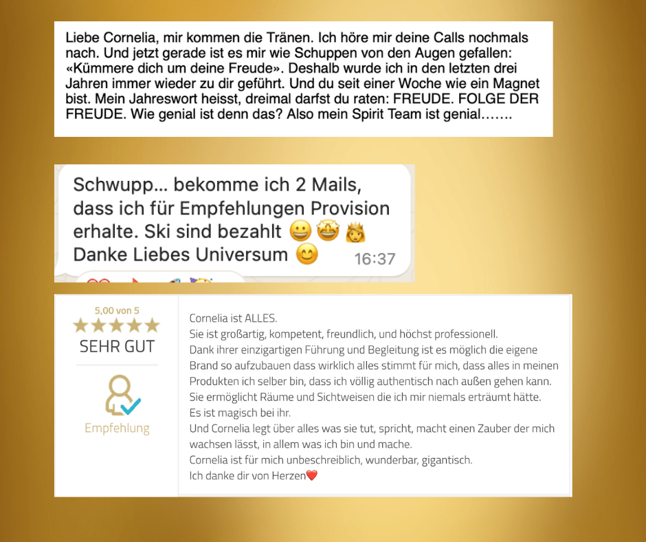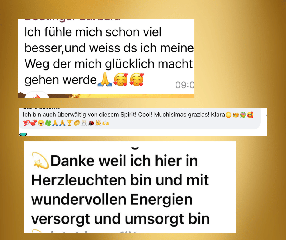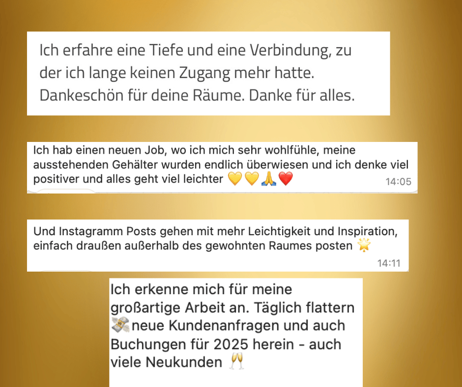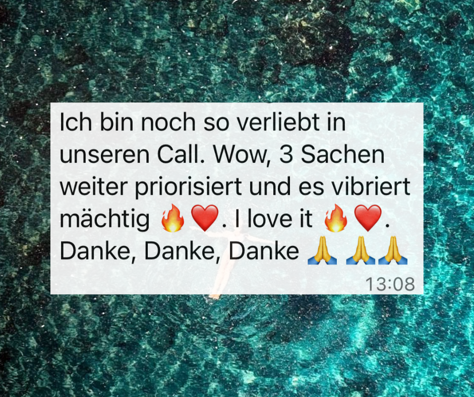 So begann mein Weg. Zuerst über meine eigene Heilung des Körpers und der weltlichen Geschichten und dann immer mehr mit begeisterten und befreiten Kunden.