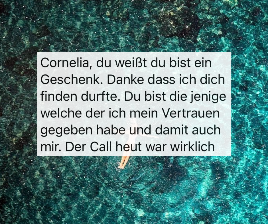 Cornelia: „Es war der tiefe innere Glaube daran, dass es anders gehen muss, als ich es gesehen und vorgelebt bekommen habe, der mich antrieb. Es war die Suche nach Antworten, weil es mir um ein wirklich erfülltes Leben geht. In allen Bereichen.